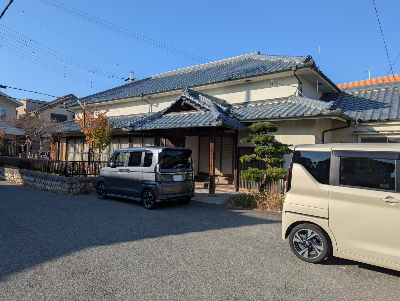 木造の古民家が改修された建物で、入母屋の玄関は格式があり、基礎には竜山石が使用されています。改修された低い柵の基礎には、丸石が積まれています。秋祭りの前には、ここで布団太鼓の組み立てが行われます。