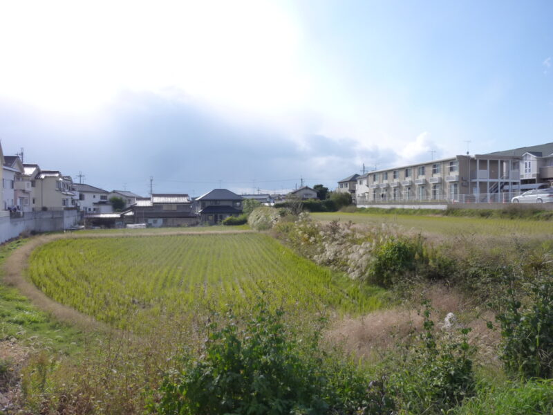 赤根川が氾濫のたびに川の流れを変えて、少しずつ地面が削り取られ、長い年月を経て段状に出来上がった自然の地形です。江井島の人々はこの地形をうまく利用して、高い所から用水路を巡らし、田んぼをつくりました。