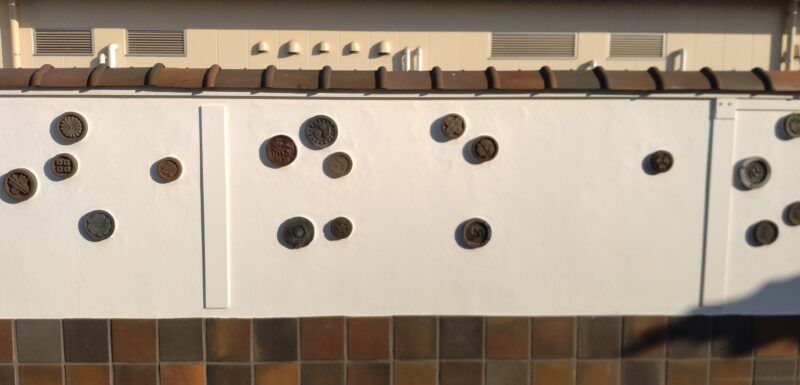 20.瓦のオブジェ 江井島 2026.03.052026.03.21 江井島 撮影年:2013年 明石窯業あかしようぎょうがあった付近では、工場がなくなった今でも明石瓦にちなんだオブジェ、アンティークなタイル、そして赤みがかったブロックなどに明石の塩焼しおやき瓦の面影を見ることができます。 明石ヘリテージマップ『江井島』2013 トイレなし駐車場なし 変化なく存在する。 撮影日:2025.12.07